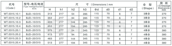 B-變壓器用;D-單體瓷絕緣;F-復合瓷絕緣;J-有附加絕緣:W-防污;L-穿纜(或可裝電流互感器),套管型號中“廣前 的數字表示額定電壓(KV ) 后的數字表示額定電流(A)。